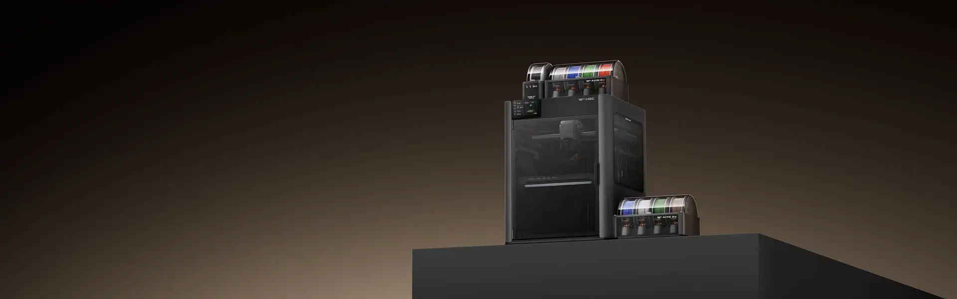 Unlike traditional toolchanger printers that limit color count by the number of toolheads, the H2C supports up to 24 materials in a single print through parallel-connected AMS units.