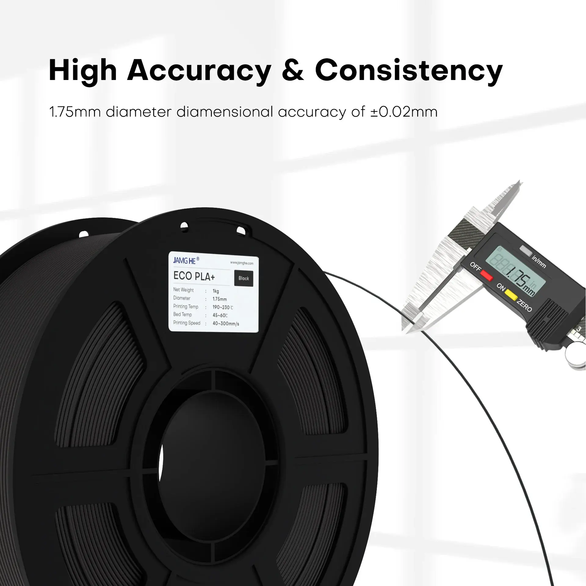 JAMG HE Eco-Friendly 1.75mm PLA + Filament Spool for 3D Printing